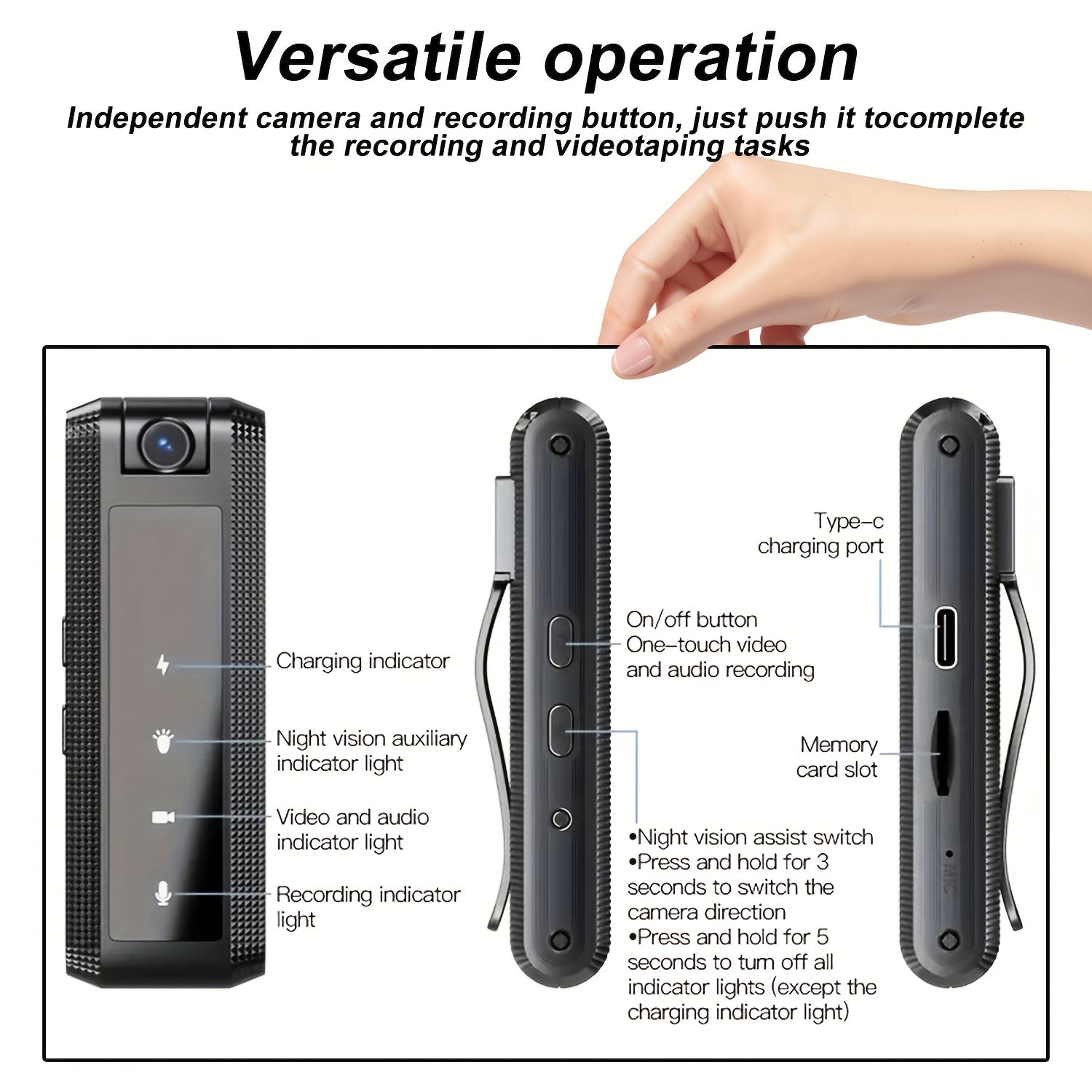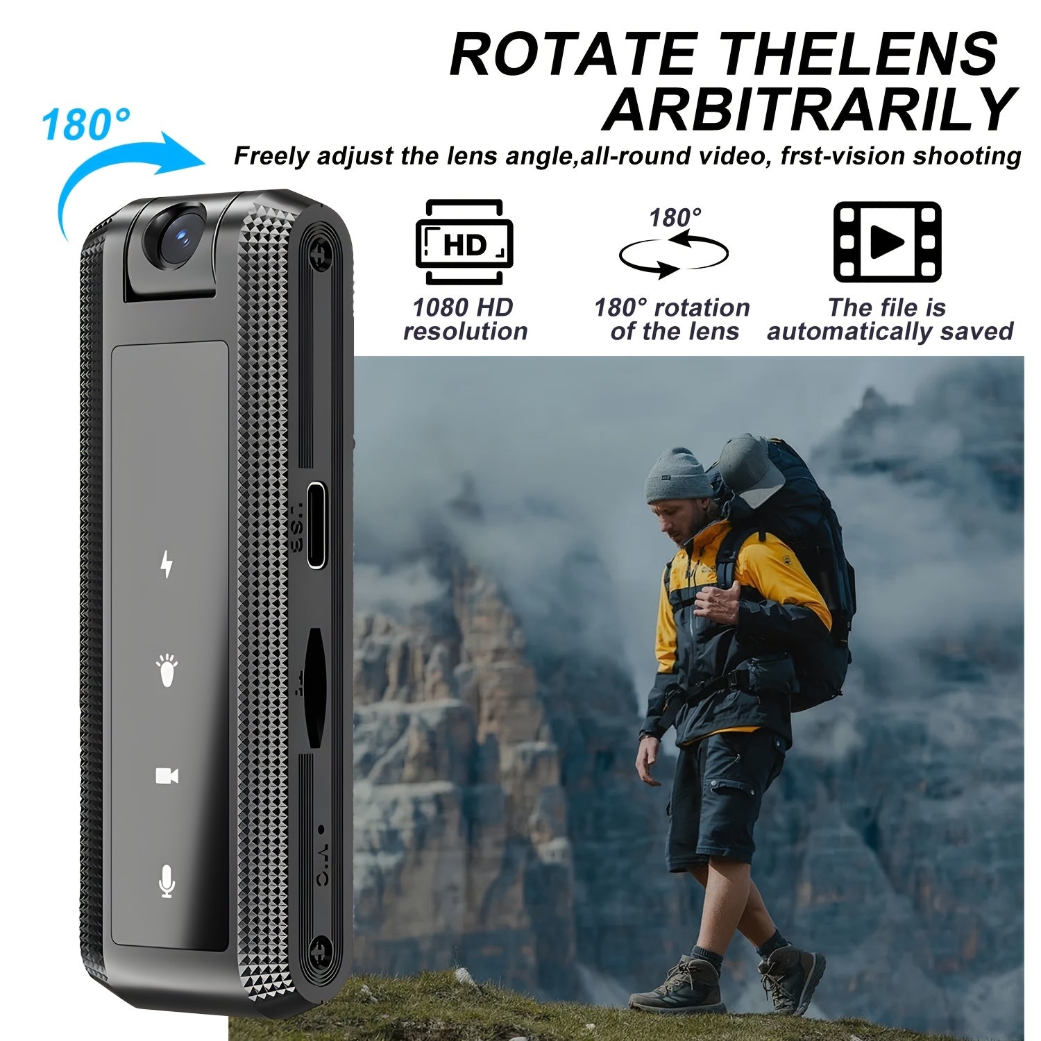 180° Adjustable Lens, with Audio/Video Recording Function