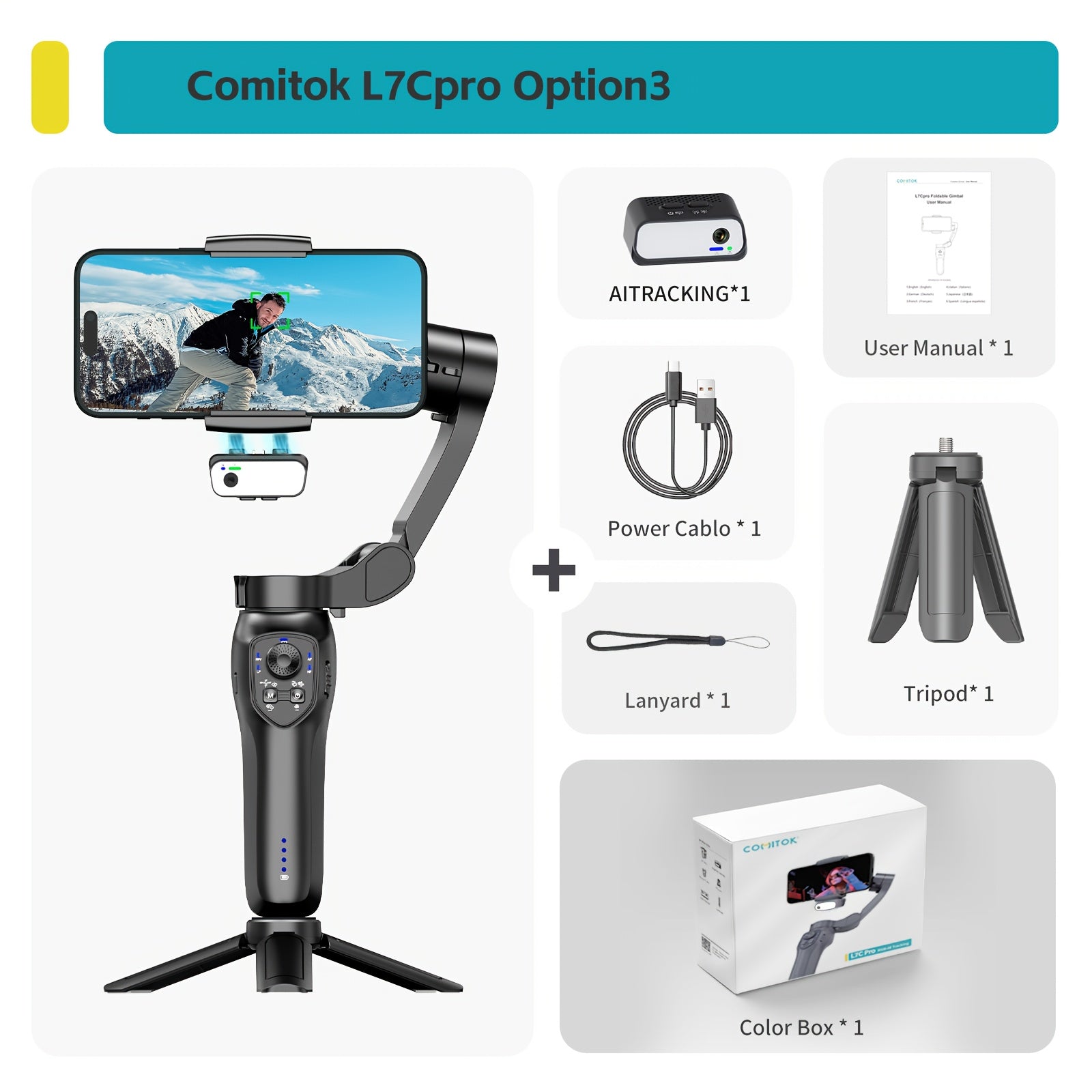 COMITOK L7C smart 3-axis handheld gimbal, can be used for shooting smooth videos