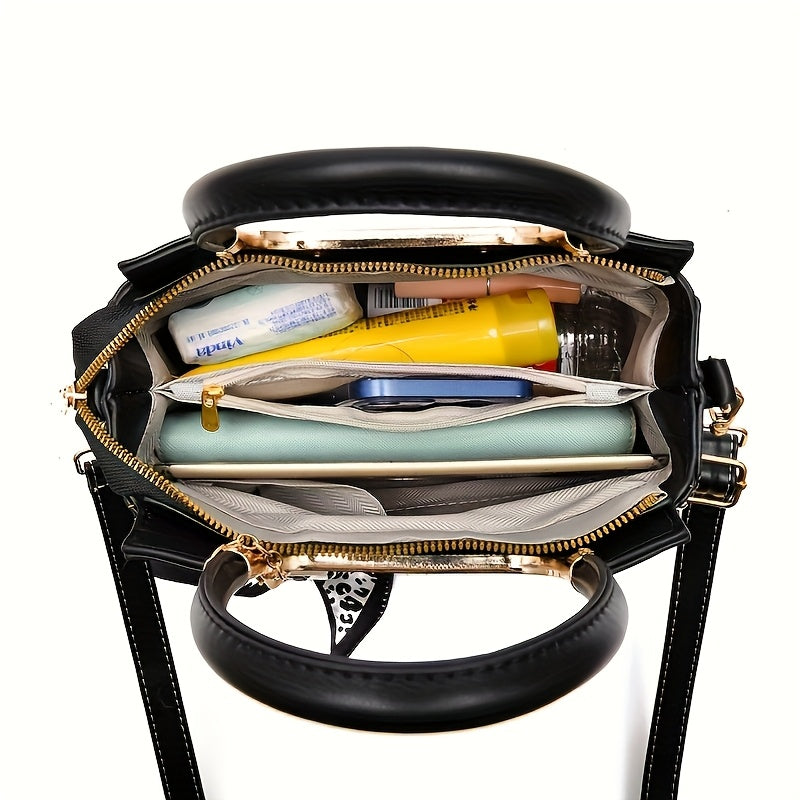 Handbag for Women Golden-Tone Hardware Elegant Black Quilted
